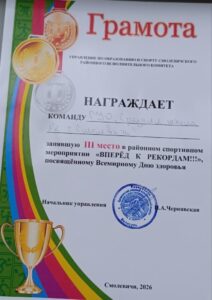 11 апреля 2026 года на базе государственного учреждения образования «Гимназия им. В.Ф. Купревича г. Смолевичи» прошло районное спортивное мероприятие «Вперед к рекордам», приуроченное ко Всемирному дню здоровья. В соревнованиях приняли участие команды городских школ района. Наша команда пятиклассников показала Подробнее