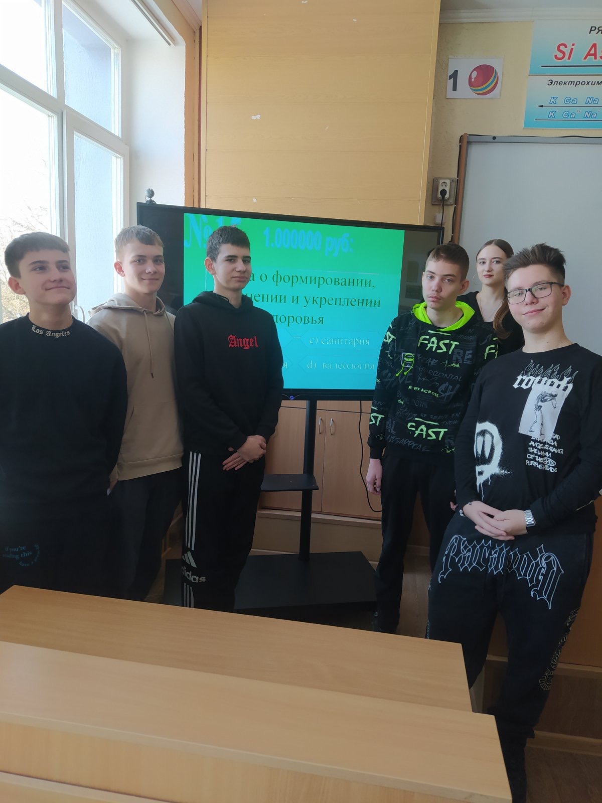 9 классы приняли участие в интеллектуальной игре «Кто хочет стать миллионером?» на тему здорового образа жизни. Целью мероприятия было формирование здорового образа жизни учащихся, положительного отношения к здоровью как к величайшей ценности, воспитания чувства ответственности за собственное здоровье. В процессе игры ребята смогли проявить свою эрудицию, умение сосредоточиться, быстро и правильно ответить на вопросы