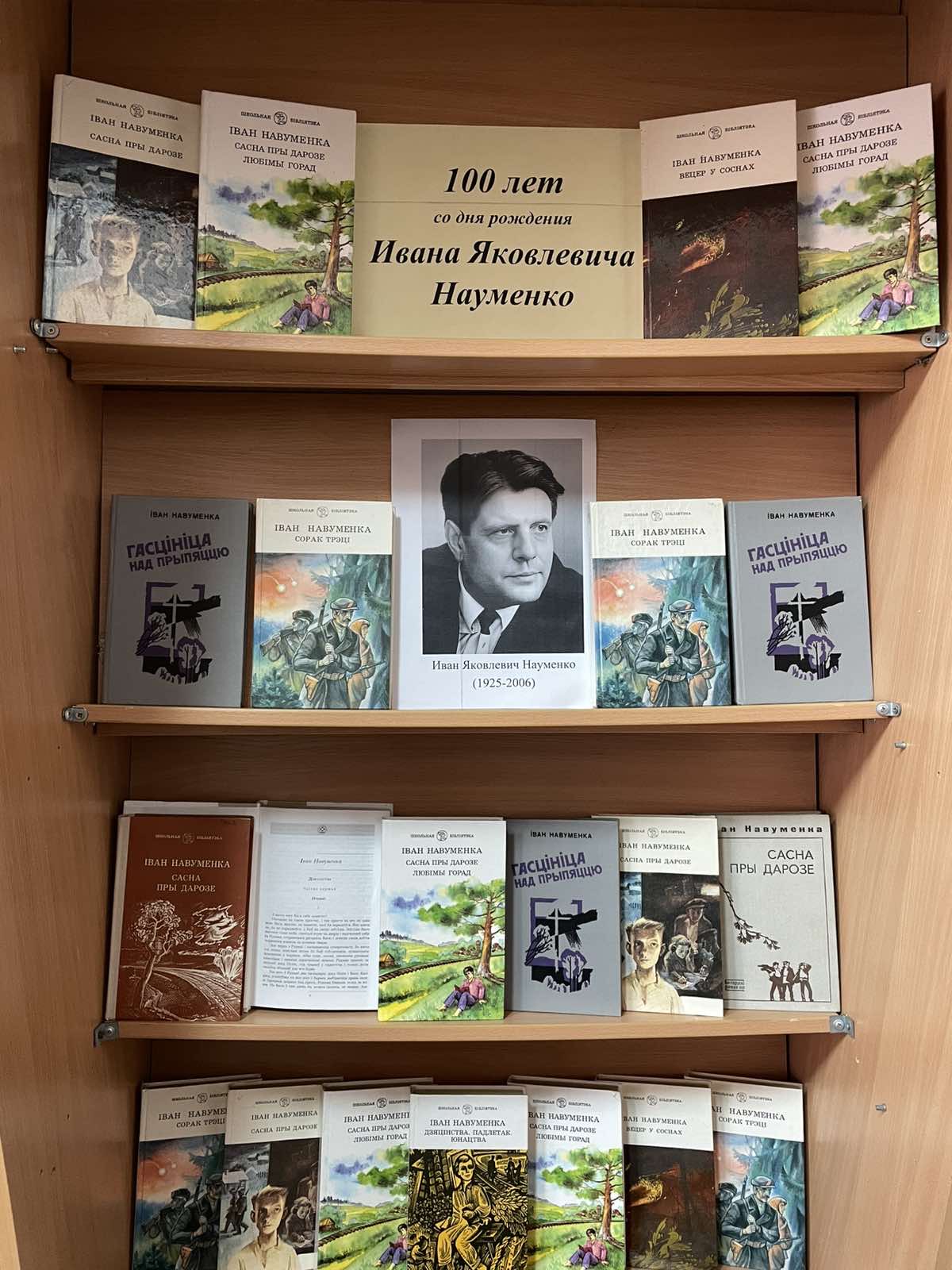 Для учащихся 1 — 11 классов в школьной библиотеке была организована книжная выставка, посвященная 100 — летию народного белорусского писателя, заслуженного деятеля науки Беларуси И. Науменко. Иван Яковлевич Науменко находится в созвездии писателей, которые в своем творчестве отразили тему Великой Отечественной.