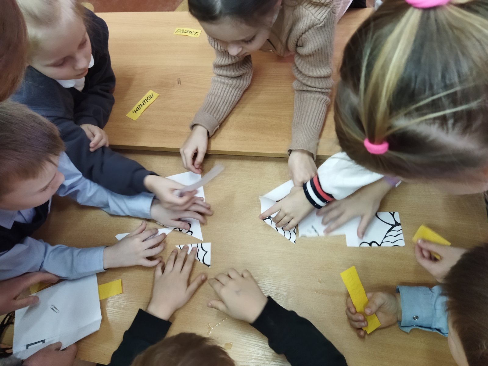 С радостными улыбками на лицах они начали работу. Каждый выбрал себе задание: кто-то мыл доску или парты, кто-то протирал пыль со шкафов и расставлял стулья.