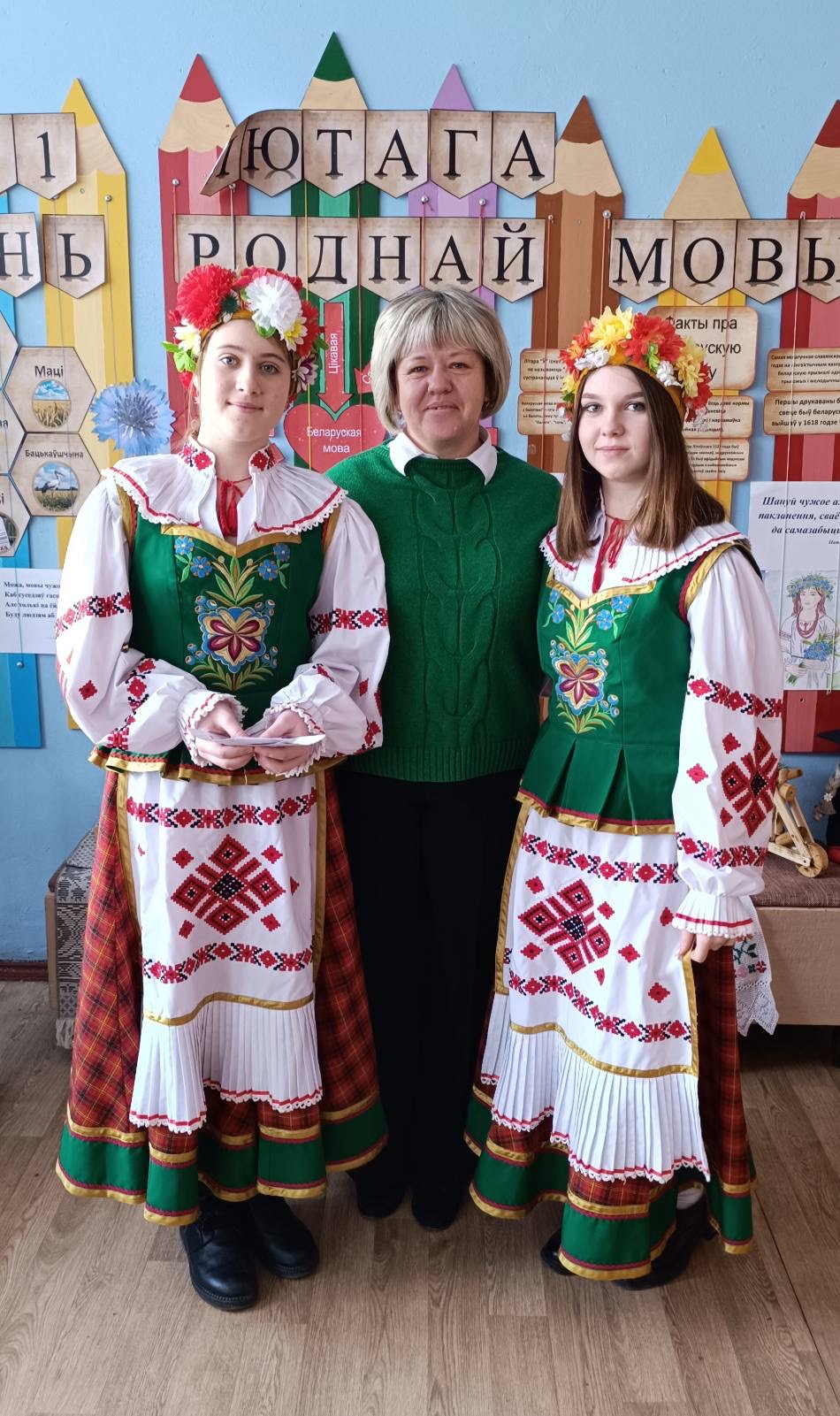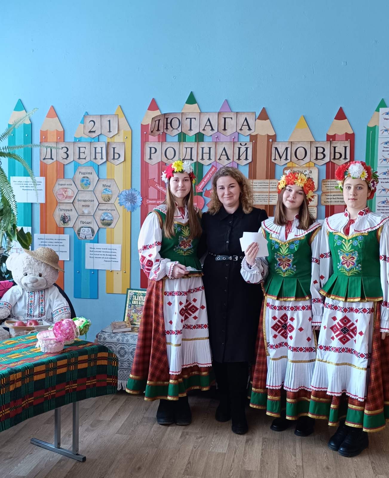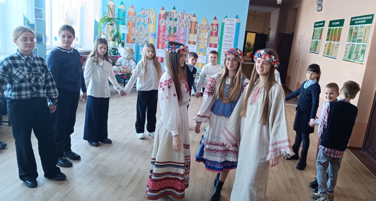 21 лютага з самай раніцы ў нашай школе панаваў святочны настрой. Прыгажуні дзяўчаты ў нацыянальных касцюмах сустракалі вучняў і настаўнікаў і прапаноўвалі далучыцца да акцыі “Размаўляем па-беларуску”. Вучаніцы 7″А” класа павіншавалі вучняў школы і расказалі гісторыю ўзнікнення свята. Увесь дзень на перапынках гучалі звонкія песні на роднай мове. Дзеці і дарослыя з задавальненнем прынялі ўдзел у акцыях “Збяром букет разам” і ” Маё любімае беларускае слова”. Яркім момантам святочнага дня стаў вясёлы карагод пад гучанне знаёмай усім “Купалінкі”. А яшчэ кожны мог даведацца, што яго чакае ў бліжэйшы час, атрымаўшы параду-пажаданне з нагоды Міжнароднага Дня роднай мовы.