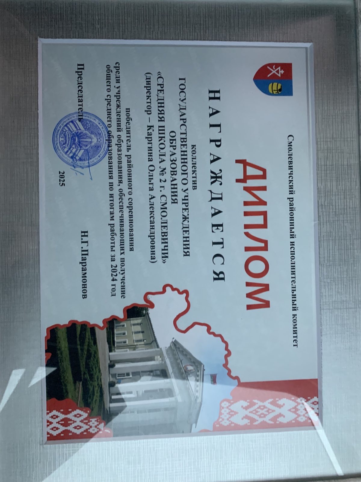 По итогам районного соревнования среди трудовых коллективов предприятий промышленности, строительства, сельского хозяйства и социальной сферы за 2024 год лучшим среди учреждений образования признан наш трудовой коллектив под руководством Ольги Александровны Каргиной. Ольга Александровна награждена дипломом Смолевичского районного исполнительного комитета и это безусловный итог высокого профессионализма.