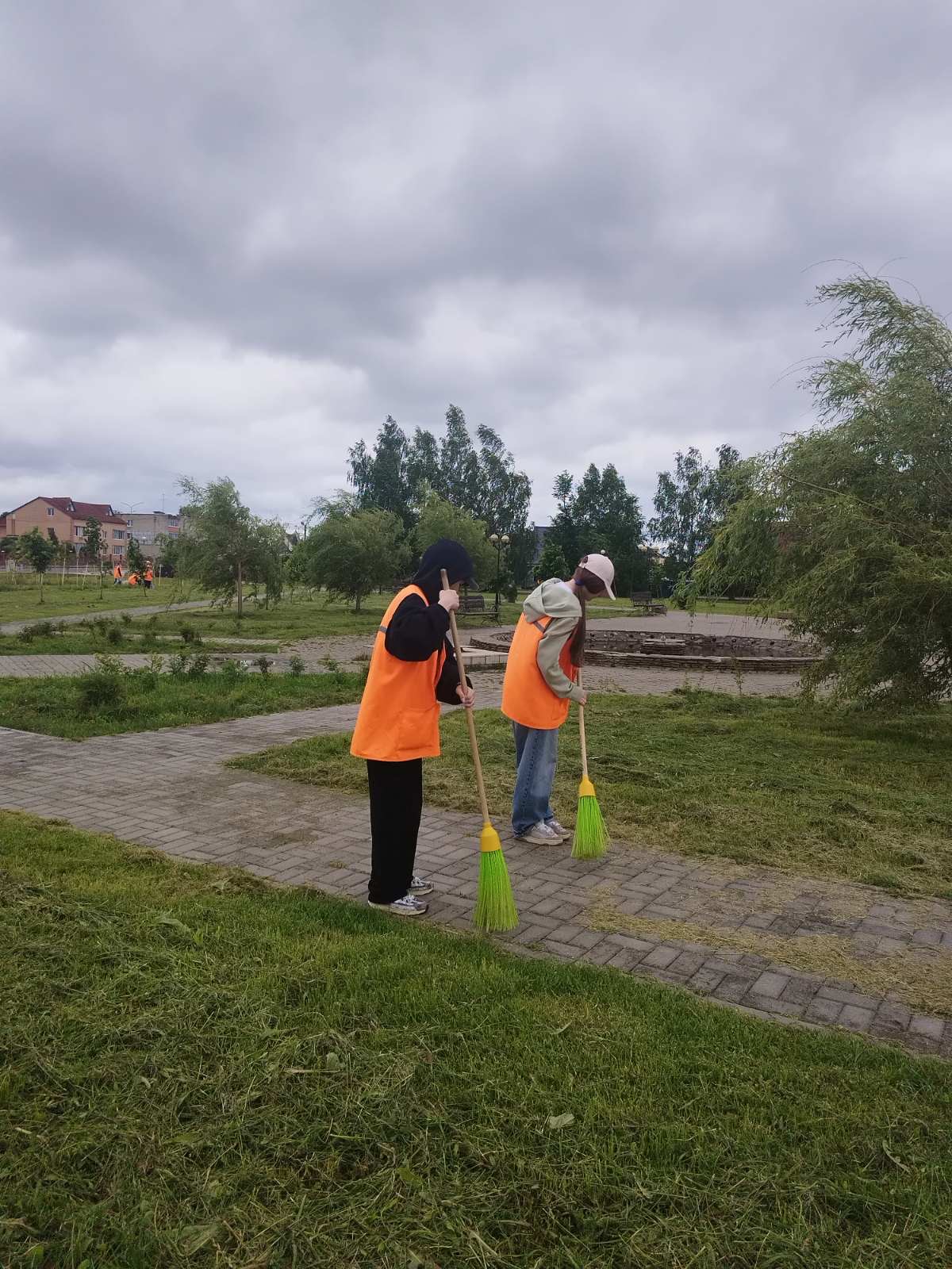 Подкрепившись, ребята отправились трудиться. Убирали придомовую территорию многоквартирных жилых домов, очищали стоянки для машин.