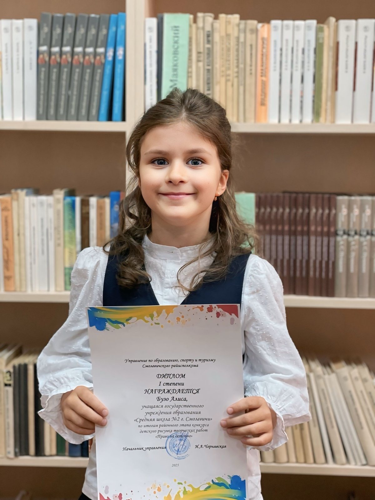 ДИПЛОМОМ I СТЕПЕНИ награждена учащаяся 1 “Б” класса БУЗО Алиса.