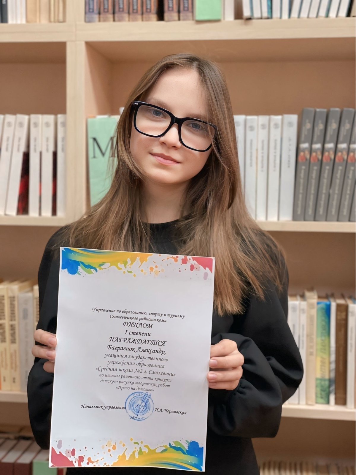 ДИПЛОМОМ I СТЕПЕНИ награждена учащаяся 8 “Б” класса БАГРАЕНОК Александра.