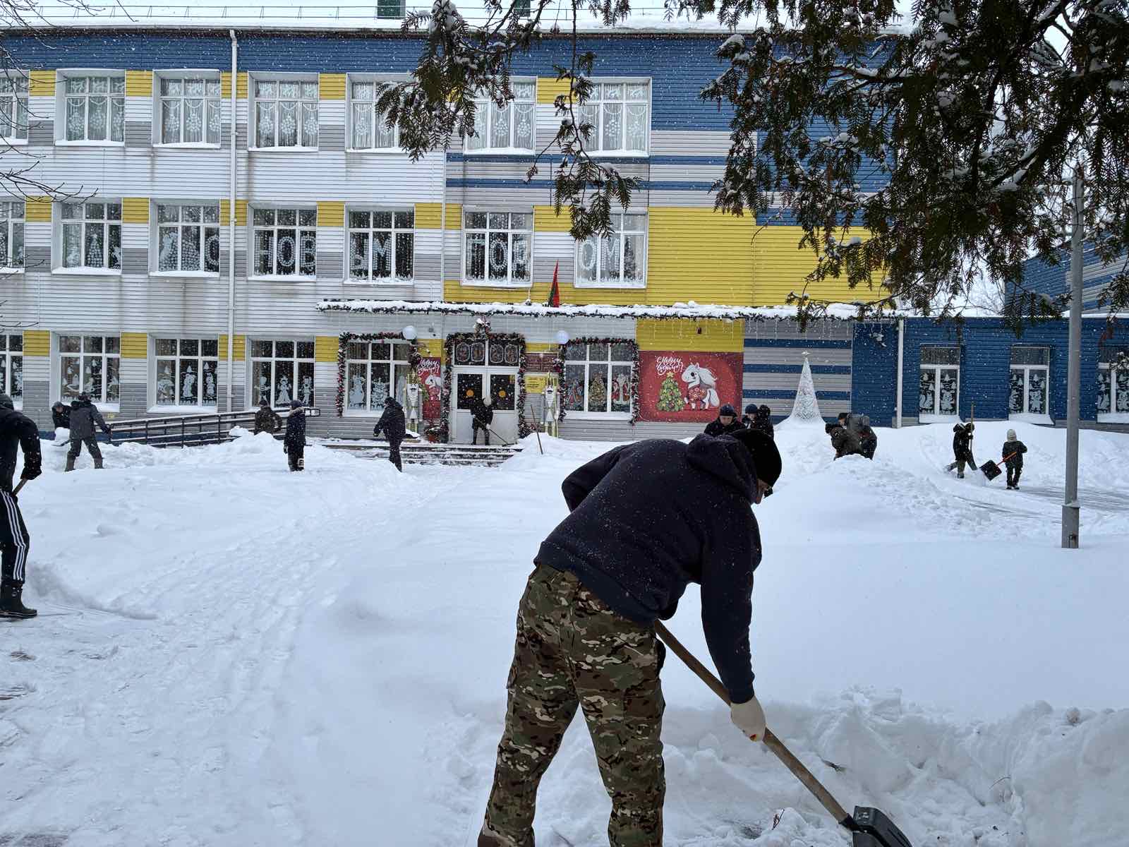 В субботу утром территория школы напоминала снежную сказку. Однако сугробы, оставленные циклоном, могли надолго усложнить жизнь, но только не для дружной команды средней школы №2 . В эти выходные школьный двор наполнился необычной для субботы активностью и теплом.