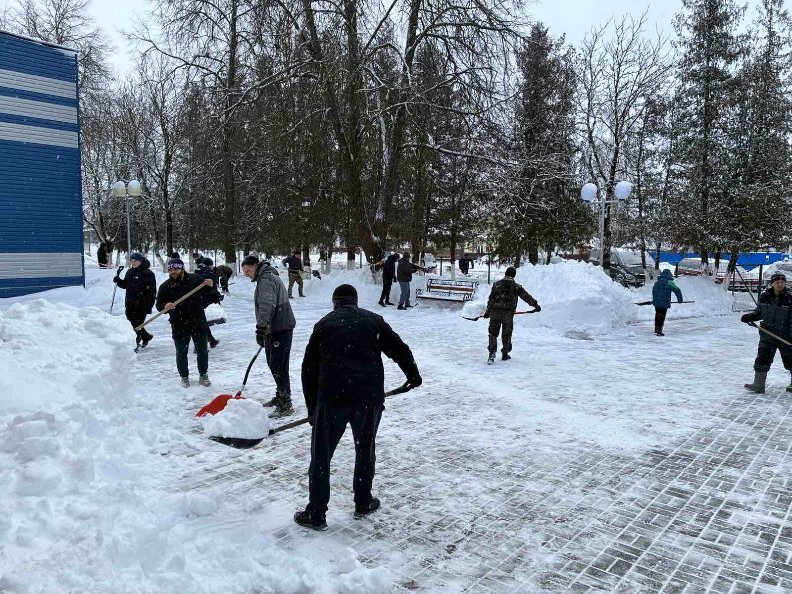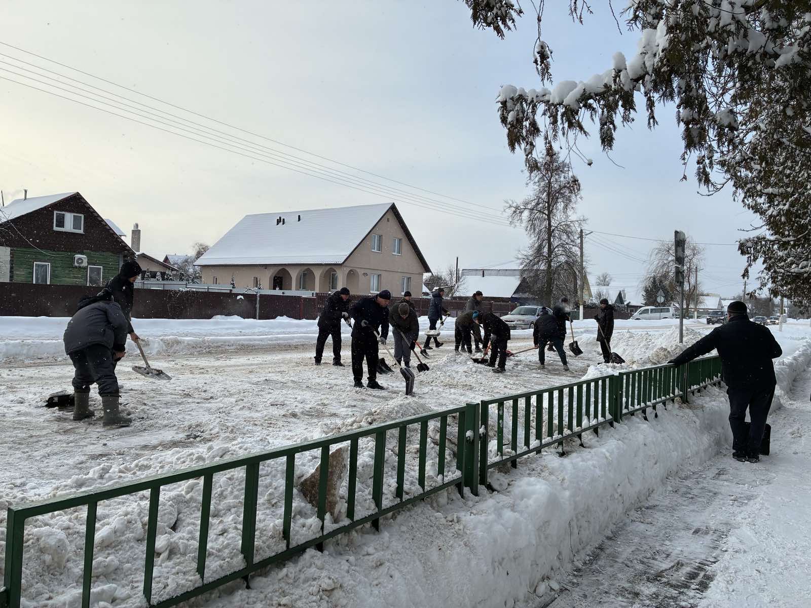 Родители, ученики и педагоги дружно взялись за лопаты, чтобы расчистить территорию от снега!!!