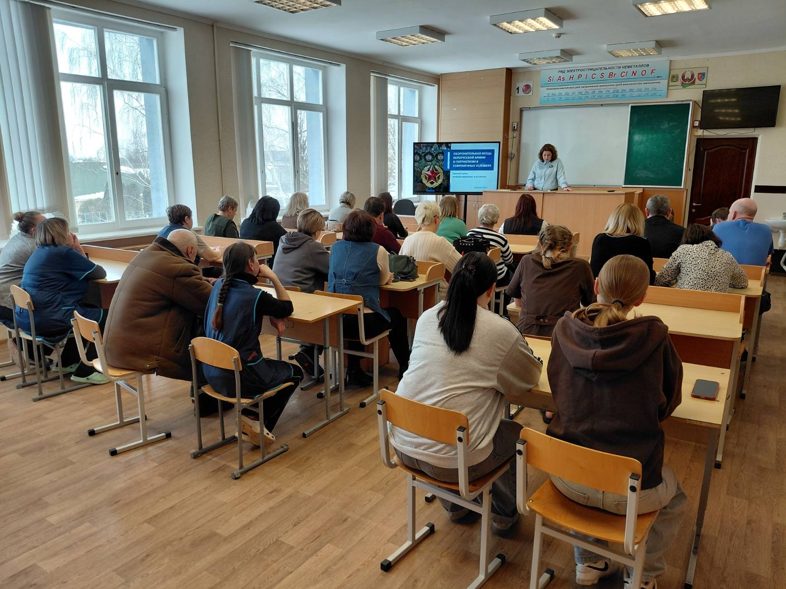 19 февраля 2026 года в нашей школе прошел Единый день информирования для педагогических работников. Тема встречи была выбрана неслучайно — «Оборонительная мощь белорусской армии и патриотизм в современных условиях».