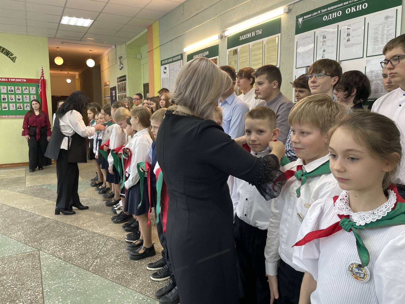 Кроме того, этот день стал знаковым для детских и молодежных организаций школы: пионерская дружина «Лазурная» пополнила свои ряды новыми активными ребятами. Младшие школьники дали торжественное пионерское обещание, пообещав любить свою Родину и хорошо учиться. А учащиеся 14 лет сделали важный шаг, вступив в ряды БРСМ. Ребята произнесли торжественное обещание и получили свои первые членские билеты.