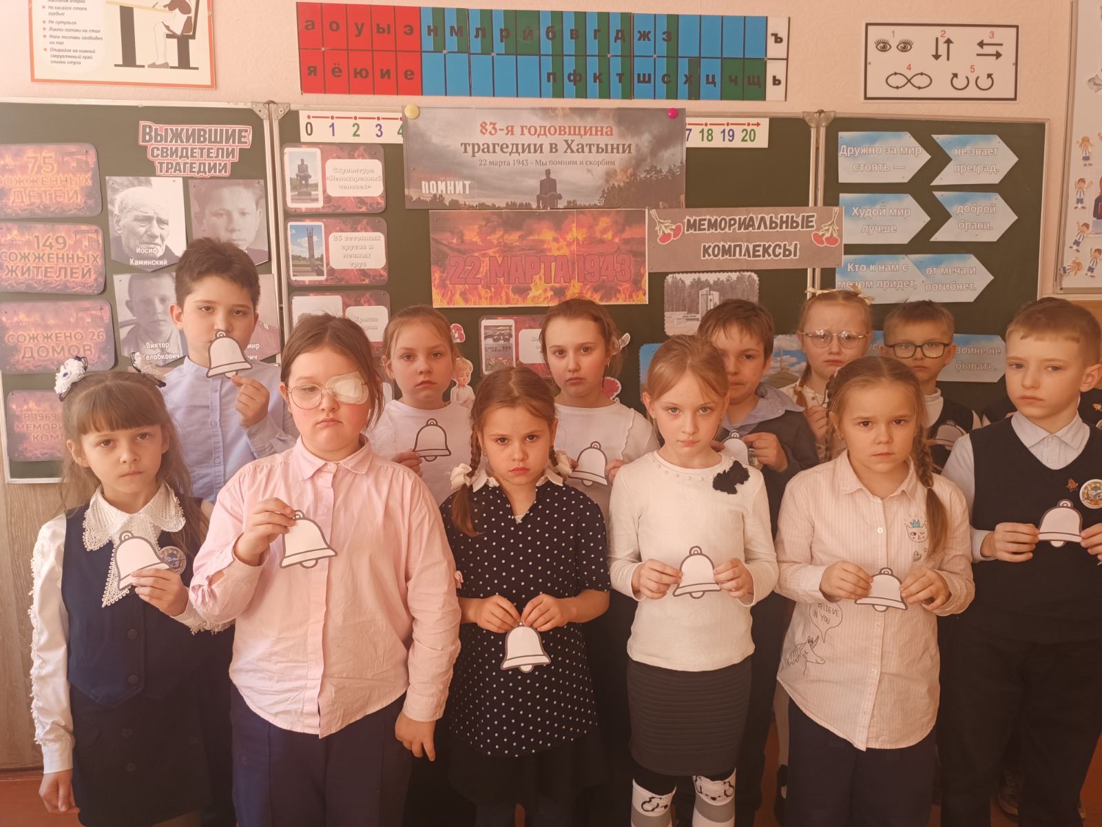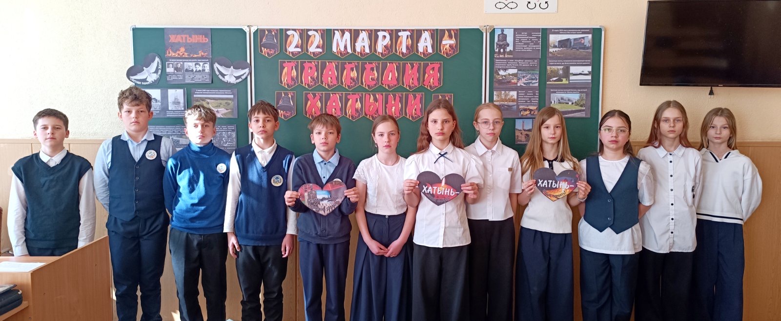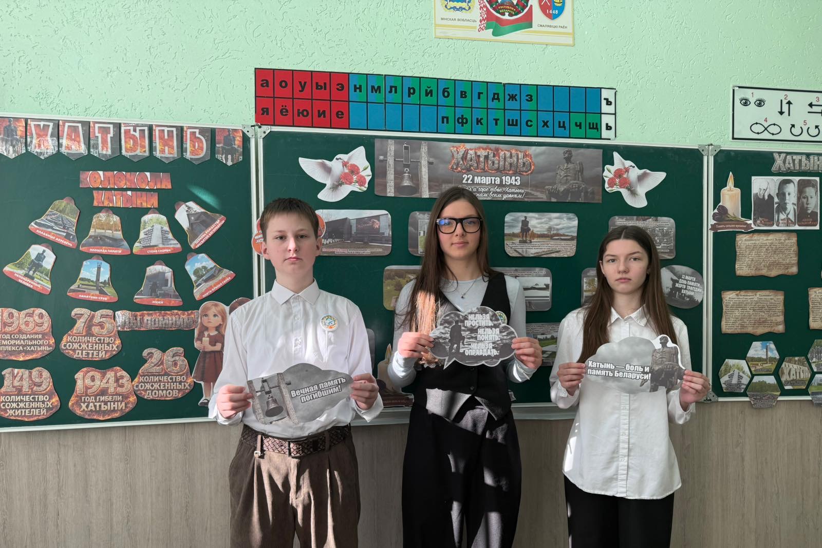 Ребята посмотрели документальную хронику, прочитали отрывки из воспоминаний очевидцев и почтили память погибших минутой молчания, прочитали стихи и послушали песни, посвященные Хатыни. Говорили о том, что Хатынь — это не просто история одной деревни. Это символ всех сожженных деревень Беларуси.