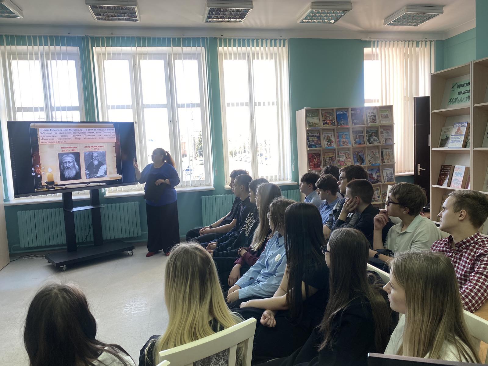 В Смолевичской центральной библиотеке им. М. Богдановича прошла выставка «Богослужебные книги XIX–XX века». Одними из гостей стали наши учащиеся.